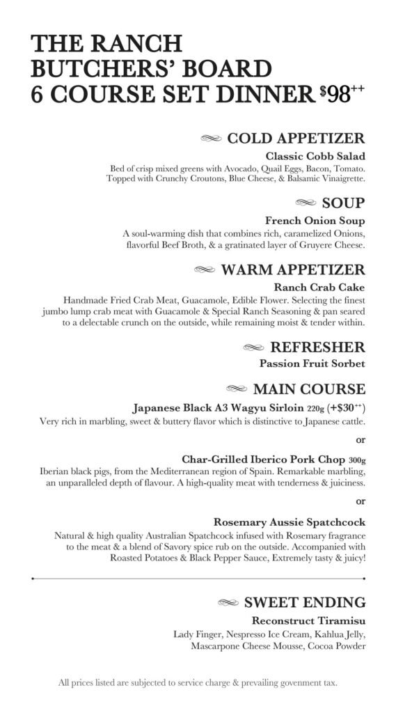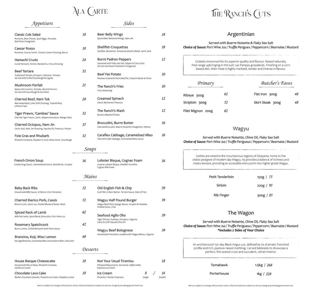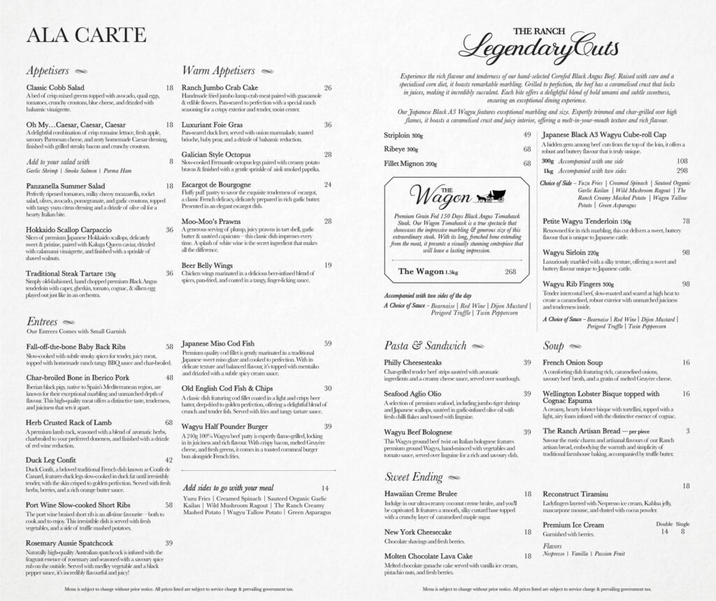 Located at 12 Purvis Street, the RANCH Steakhouse & Bar by ASTONS is a classic steakhouse concept that aims to bring you high-quality beef from around the world, fine wines and top-notch service second to none on a daily.