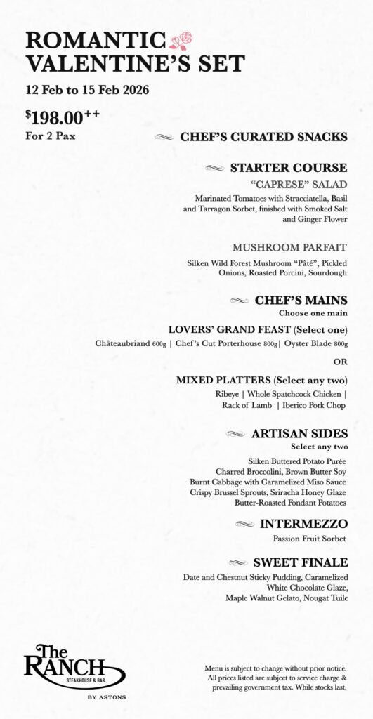 Celebrate the art of romance with our exclusive Romantic Valentine’s Set at $198++ for two. Available from 12 to 15 February 2026. Note: Lunch menu is not available on the 14 February 2026 (Saturday). Limited seats! While stocks last.